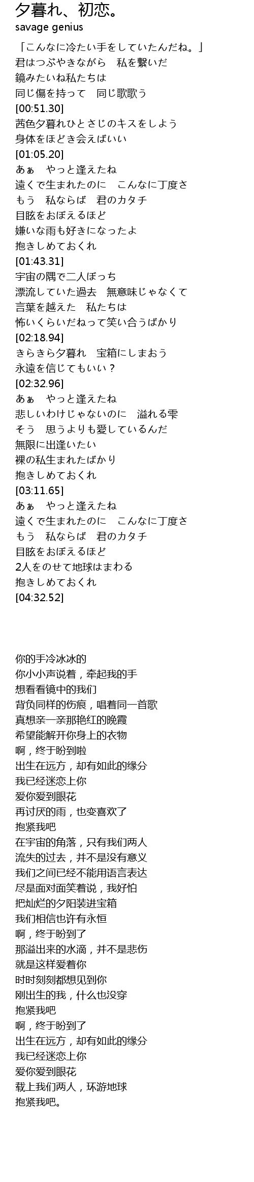 | [01:55.86] | 宇宙の隅で二人ぼっち |