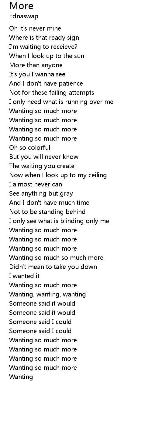 | Wanting so much so much more | |