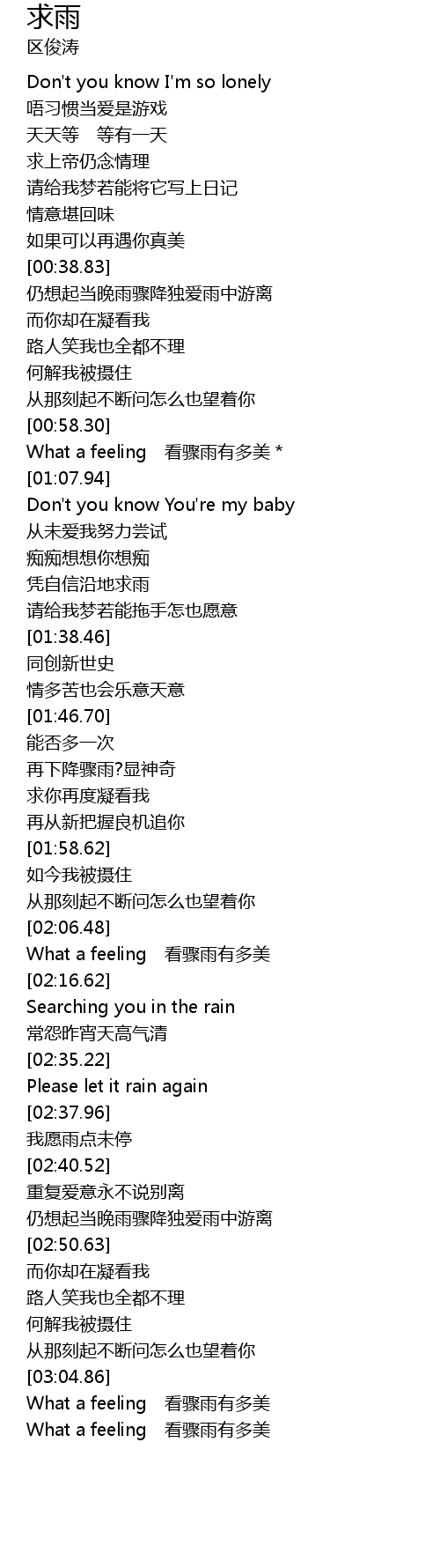 | [00:59.17] | What a feeling 看骤雨有多美* |