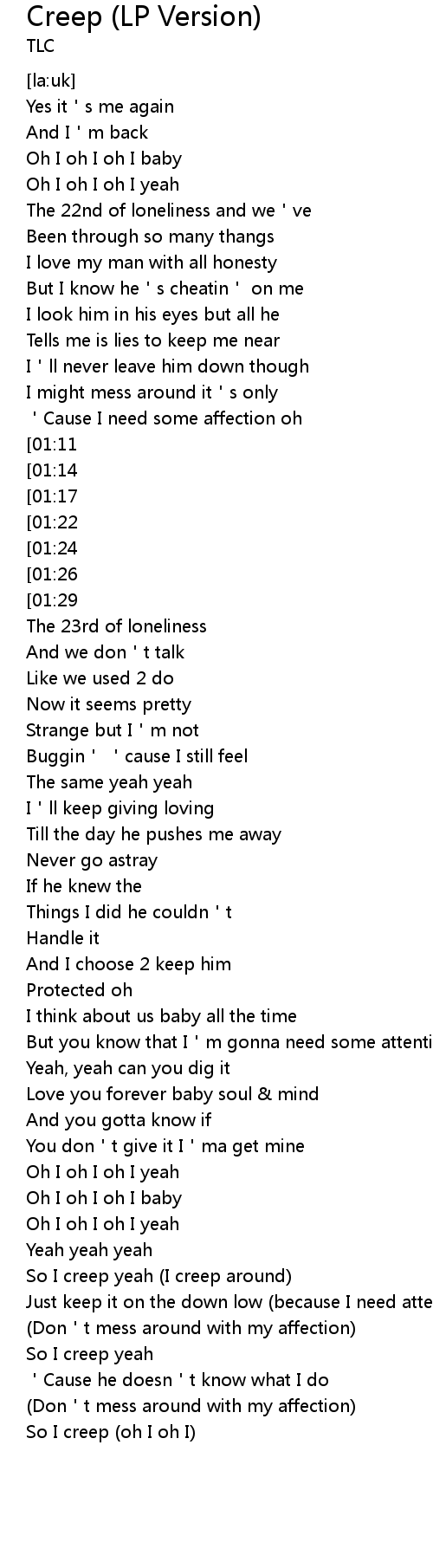 | [02:31][01:29] | Goes to show oh so I creep |