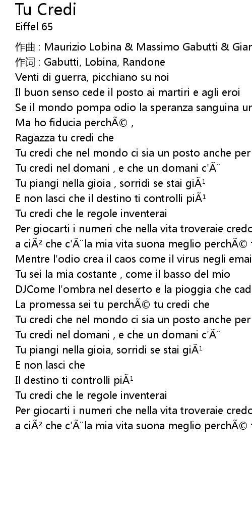 | Per giocarti i numeri che nella vita troveraie credo che al di l del limite a ci che c' la mia vita suona meglio perch tucredi in me | |