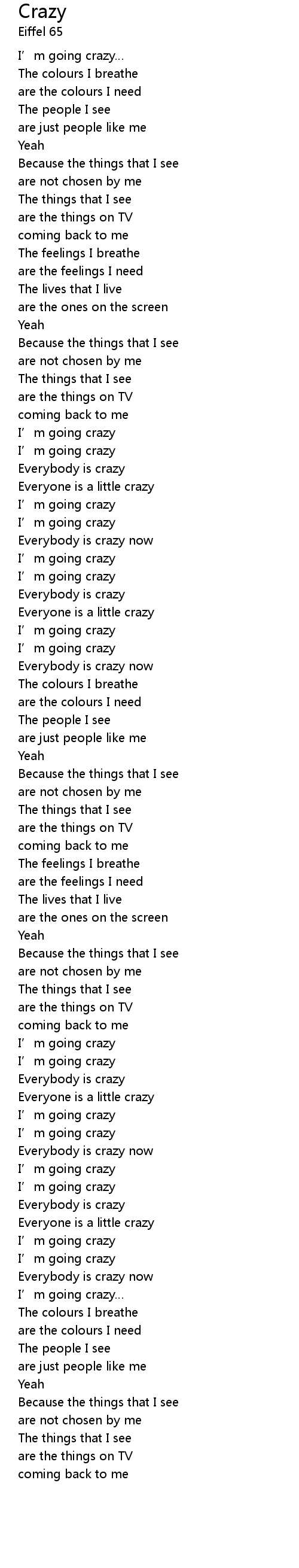 | [01:43.68] | I’m going crazy |