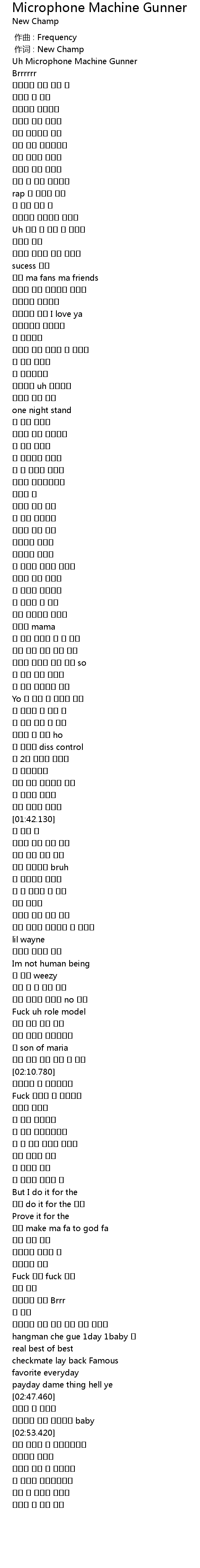 | [00:13.510] | Uh Microphone Machine Gunner |