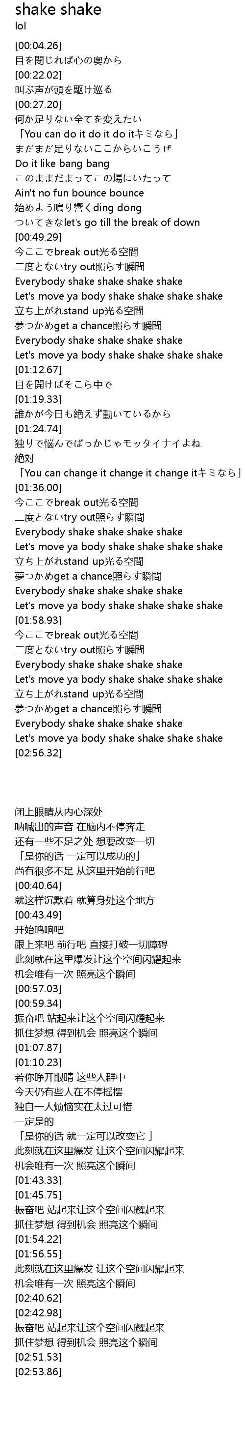 | [02:51.53] | Everybody shake shake shake shake |