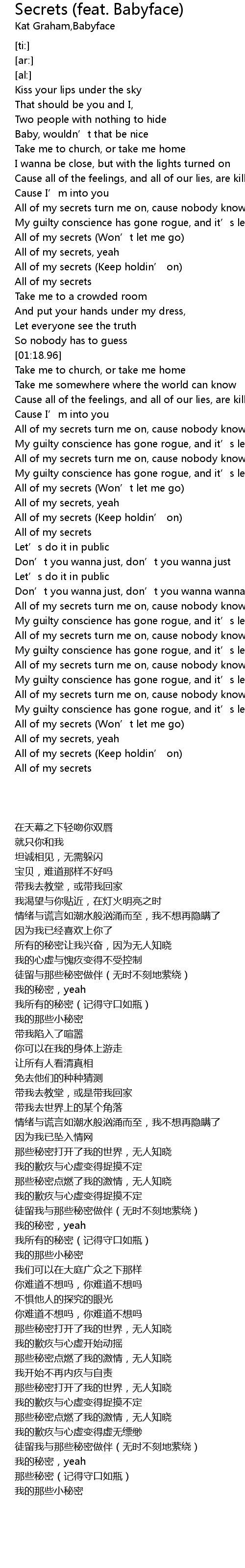 | [02:53.58] | All of my secrets turn me on, cause nobody knows |