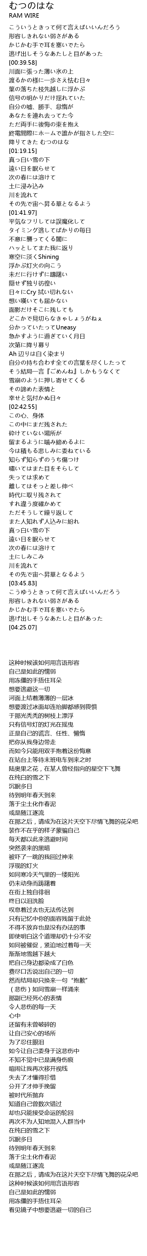 | [00:45.00] | 渡るかの様に一歩さえ怯む日々 |