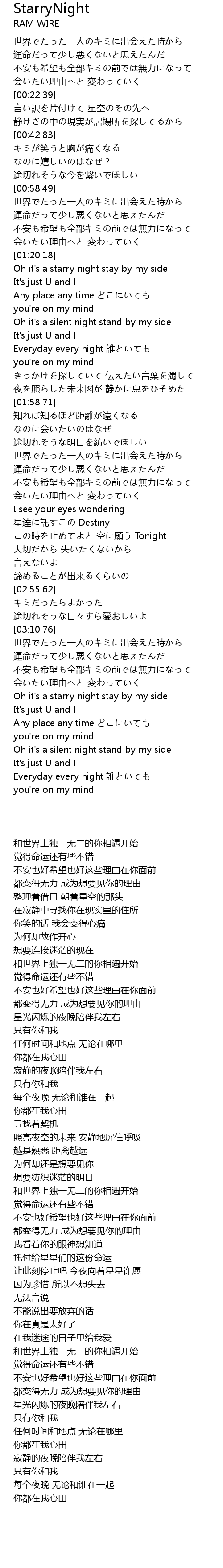 | [03:34.55] | Oh it's a starry night stay by my side |