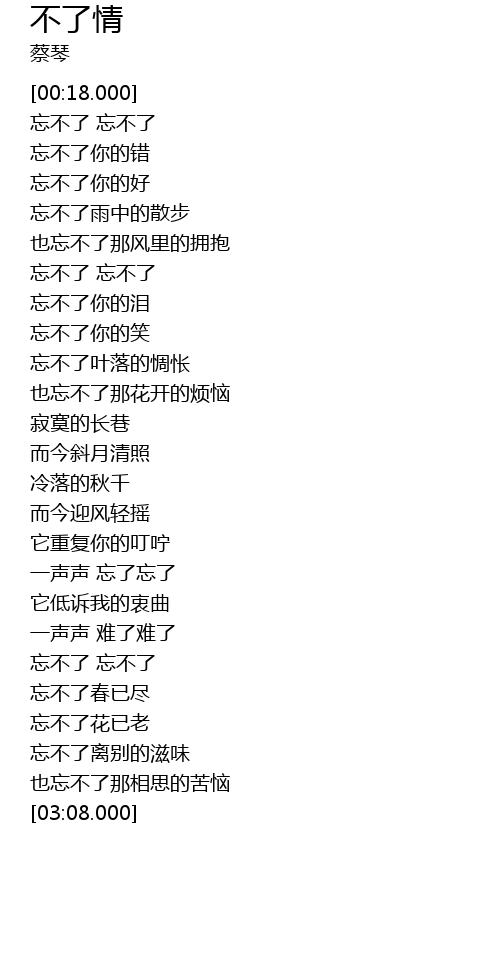 | [00:19.000] | wàng bù liǎo wàng bù liǎo |