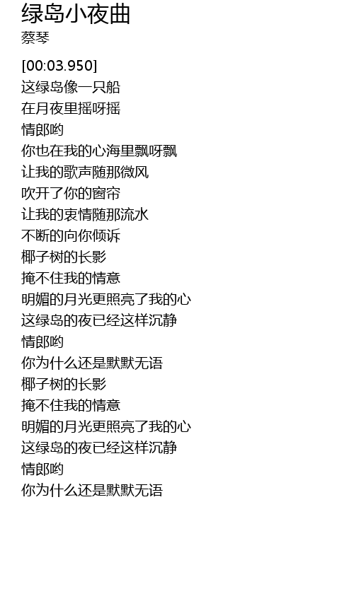 | [00:37.750] | 这绿岛像一只船 |