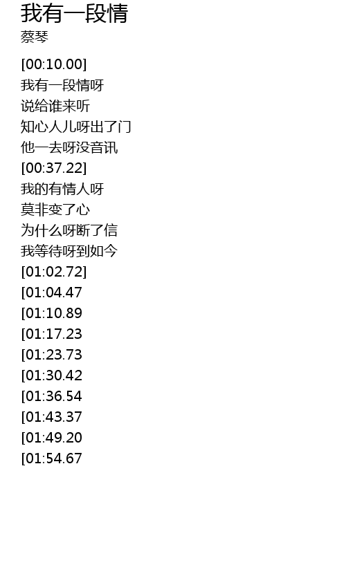 | [02:48.55][01:30.42] | 我有一段情呀 |