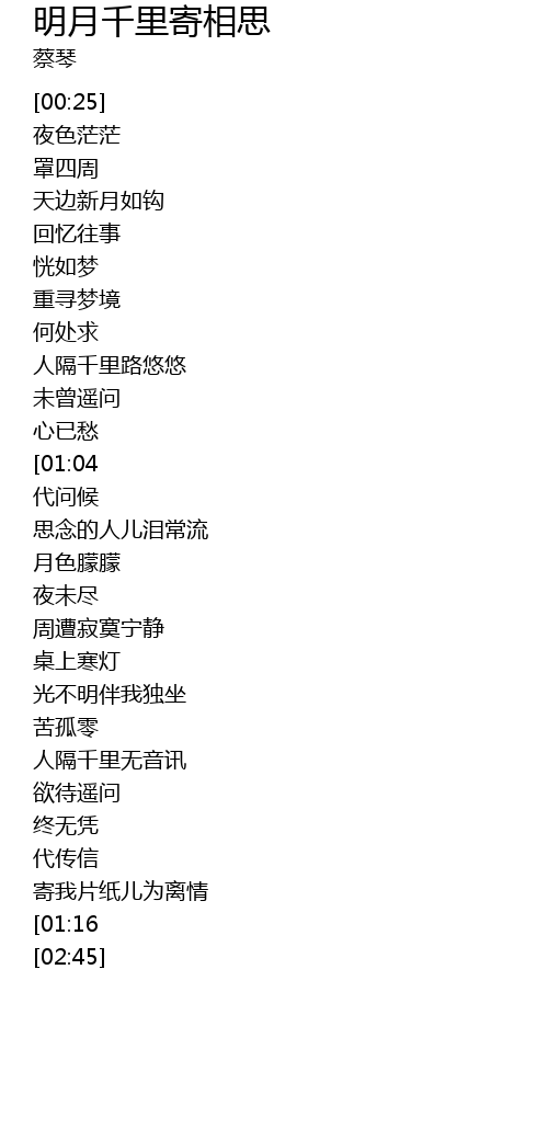 | [02:26] | jì wǒ piàn zhǐ ér wèi lí qíng |