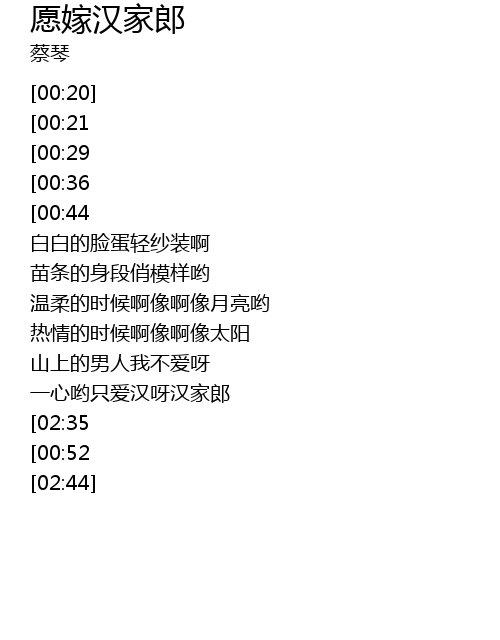 | [02:26][00:44] | bǎi yí de gū niáng yuàn ya yuàn jià hàn jiā láng |