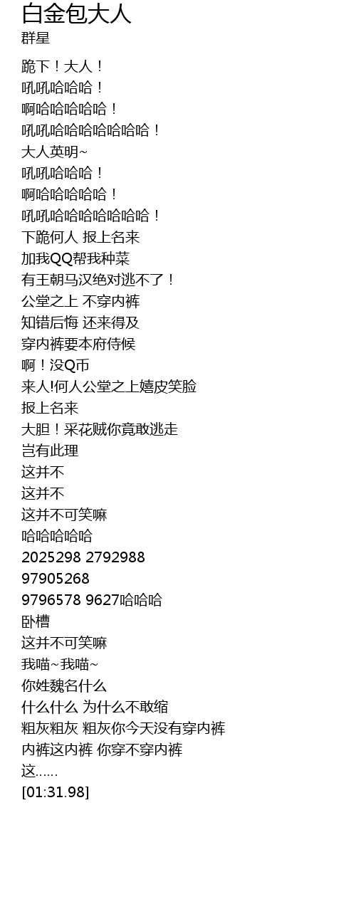 | [00:27.50] | 公堂之上 不穿内裤 |