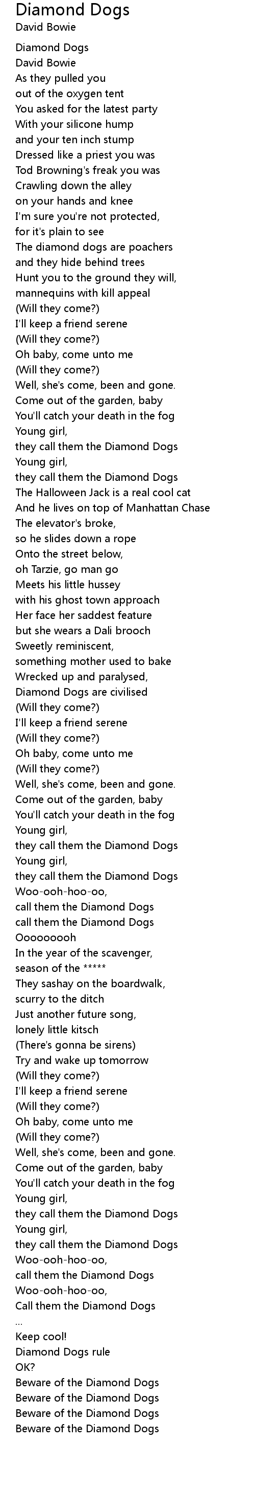Beware of the Diamond Dogs |