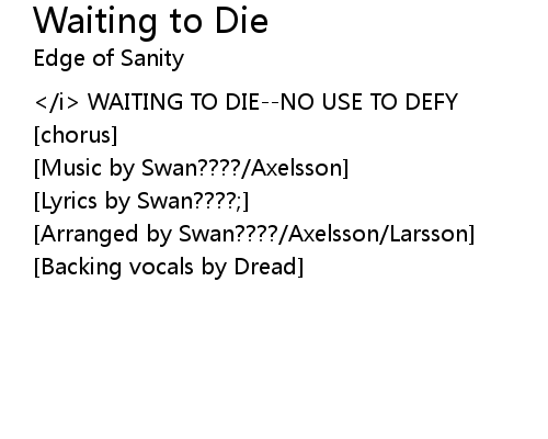 | [Chorus:]</i> WAITING TO DIE--NO USE TO DEFY | |