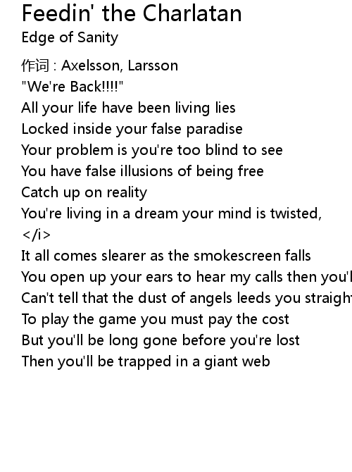 | Song | Feedin' the Charlatan |