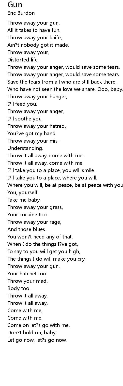 Throw away your gun, |