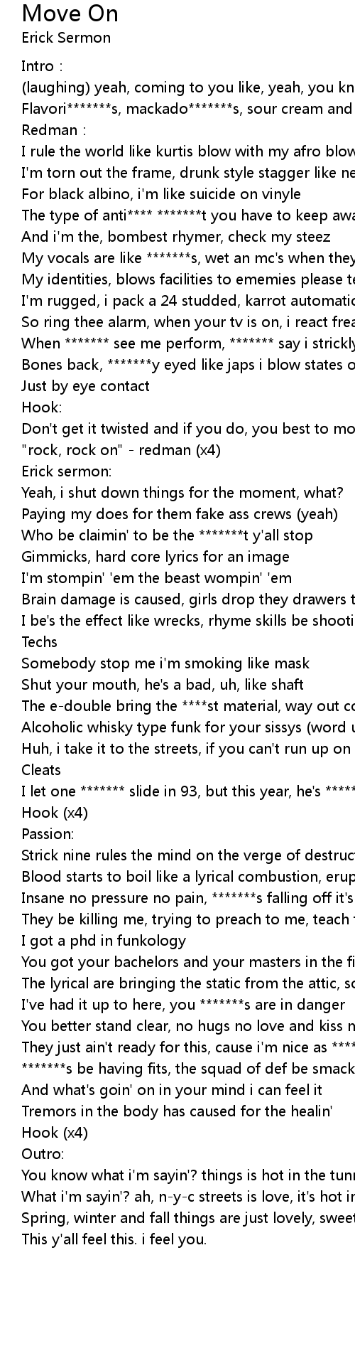 | Don' t get it twisted and if you do, you best to move on move on | |