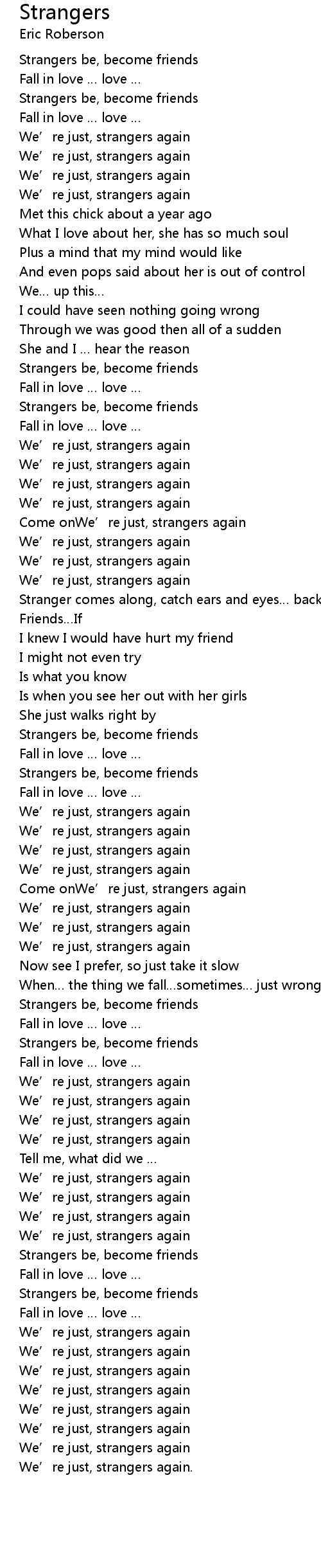 | Stranger comes along, catch ears and eyes… back and smile, wait for reply | |