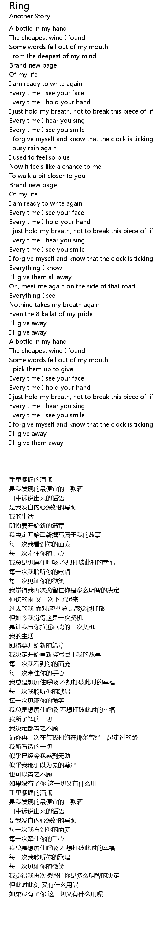 I just hold my breath, not to break this piece of life |