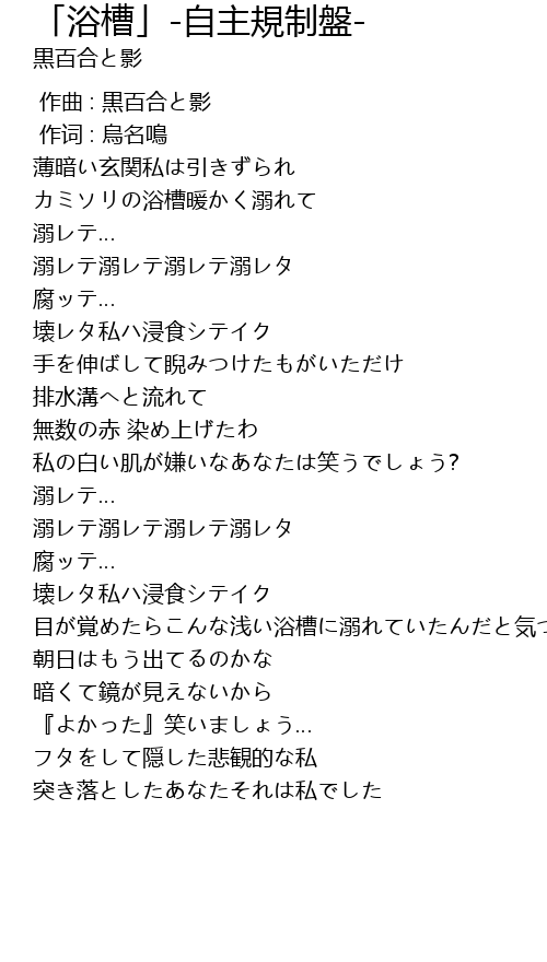| [00:45.08] | カミソリの浴槽暖かく溺れて |