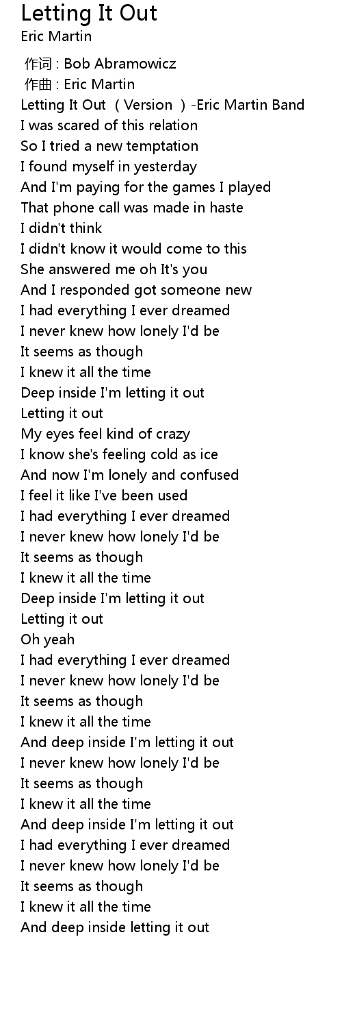 | [00:00.00] | Letting It Out Version Eric Martin Band |