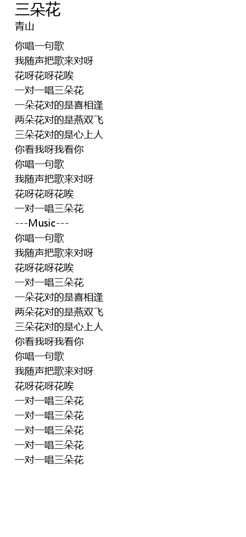 | [00:22.51] | yī duì yí chàng sān duǒ huā |