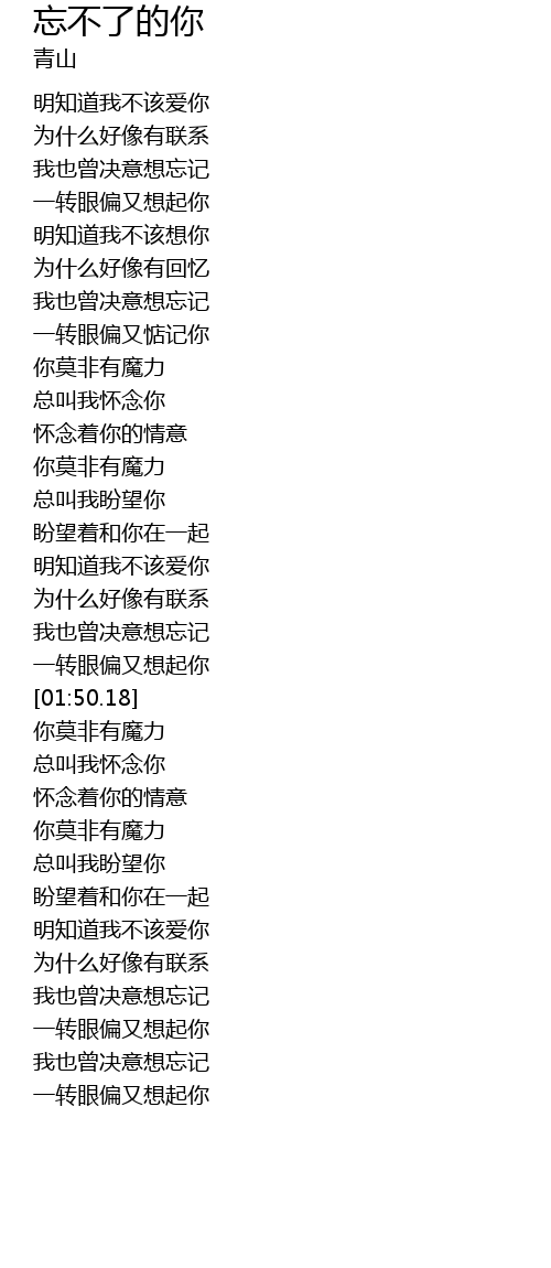 | [00:37.34] | míng zhī dào wǒ bù gāi xiǎng nǐ |