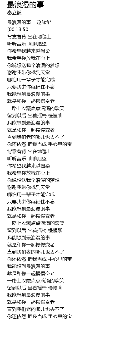 | [00:00.00] | 最浪漫的事 赵咏华 |