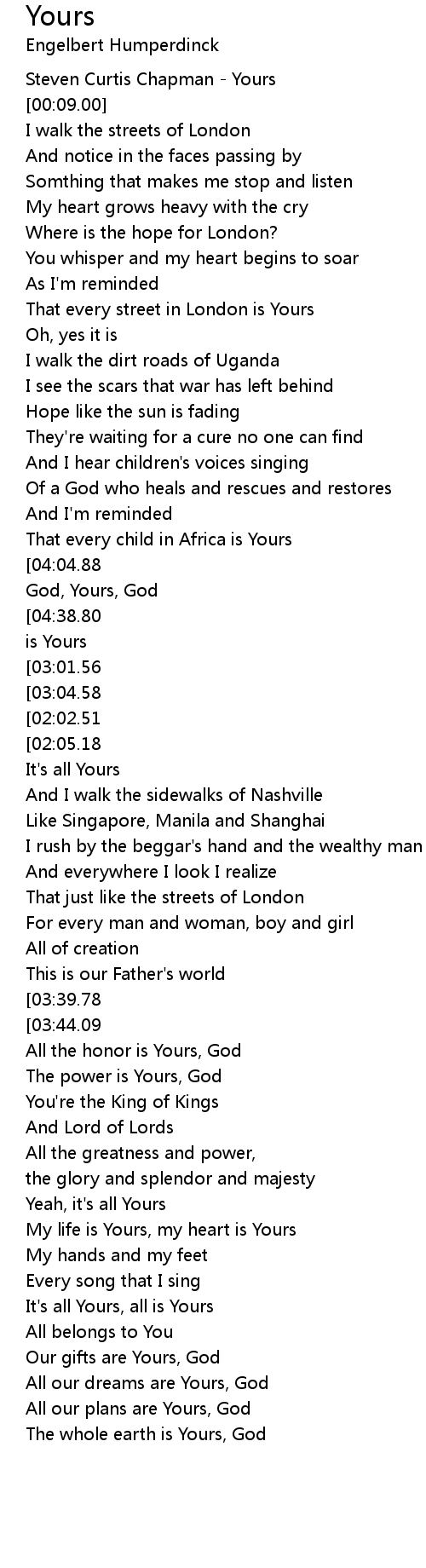 And its all Yours, God, Yours, God |