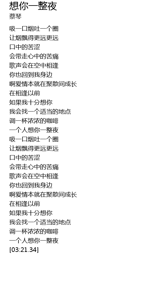 | [03:13.69] | yí ge rén xiǎng nǐ yī zhěng yè |