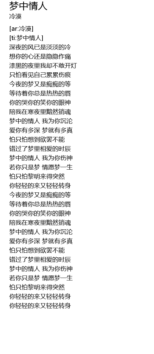 | [03:01.83] | 梦中的情人 我为你沉沦 |