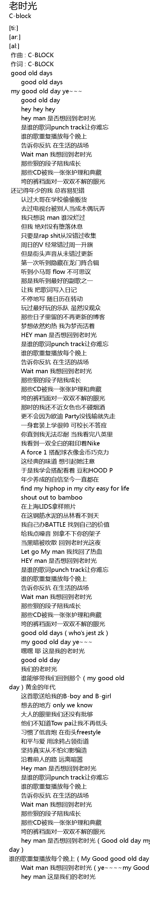 | [03:41.40] | hey man 是否想回到老时光(Good old day my good good old day) |