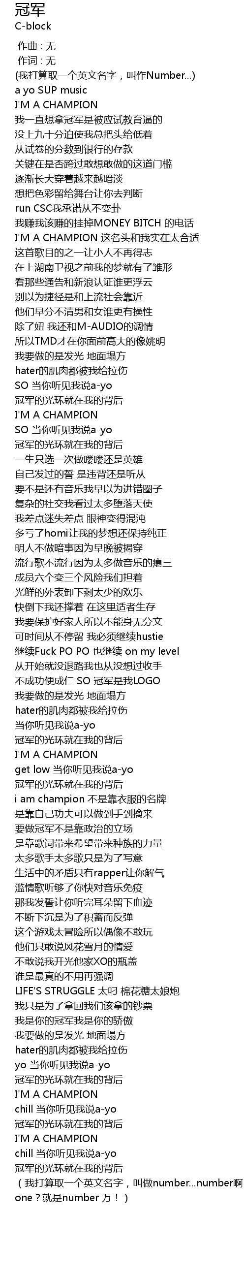 | [00:36.78] | I'M A CHAMPION 这名头和我实在太合适 |