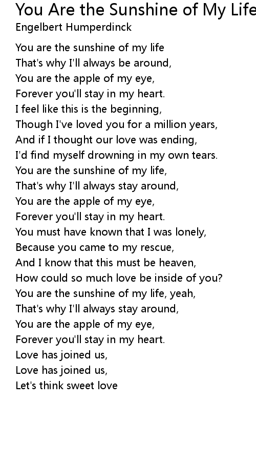 You are the sunshine of my life, |