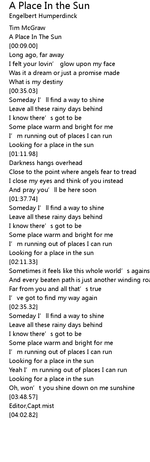 | [00:07.75] | A Place In The Sun |
