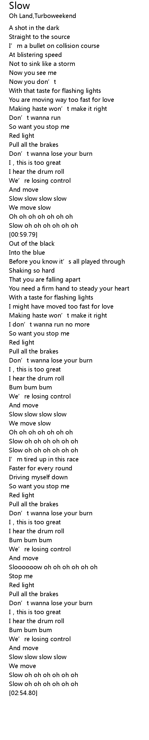 | [02:50.22] | Slow oh oh oh oh oh oh |