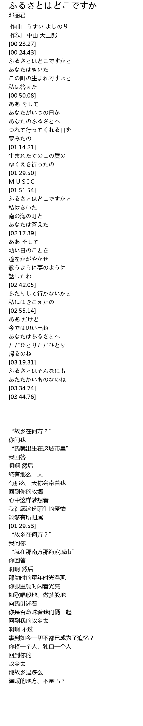 | [01:51.94] | ふるさとはどこですかと |