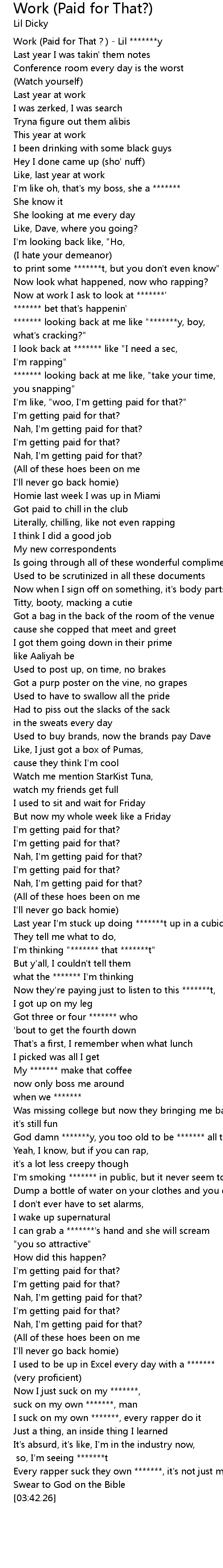| [00:01.53] | Work (Paid for That?) - Lil *******y |