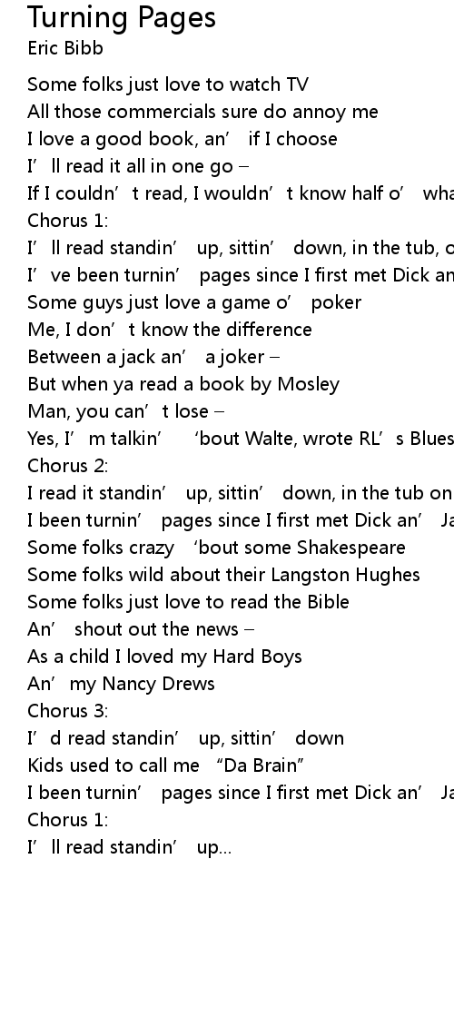 | I’ve been turnin’ pages since I first met Dick an’ Jane | |