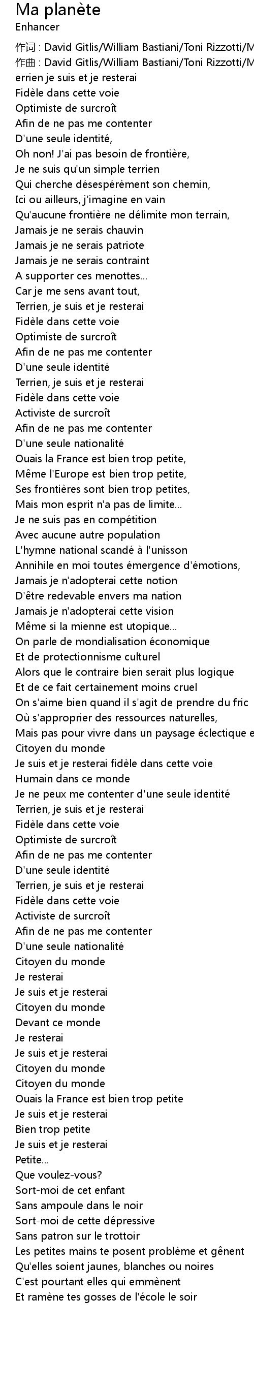 | Terrien, je suis et je resterai | |