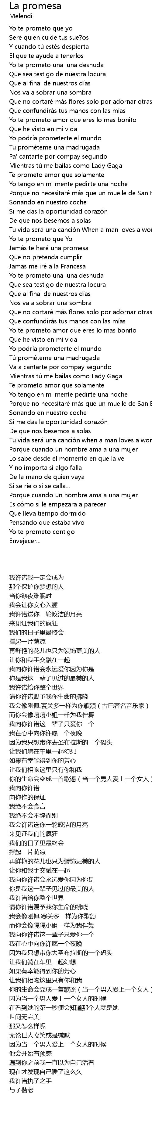 | Song | La promesa |