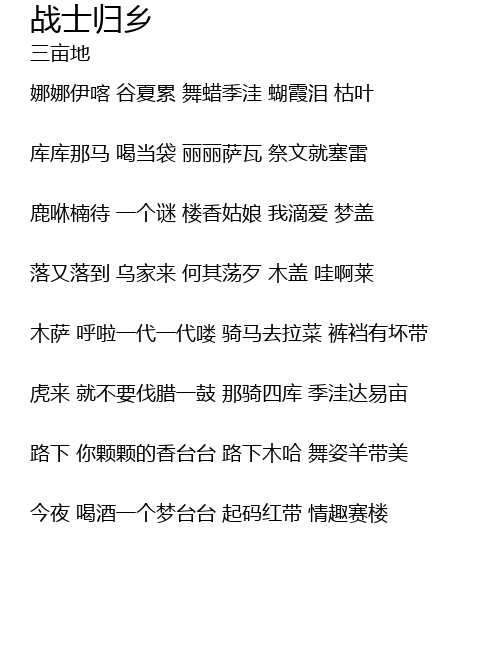 | 木萨 呼啦一代一代喽 骑马去拉菜 裤裆有坏带 | |