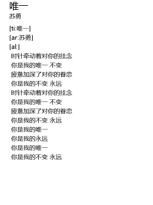 | [00:53.78] | nǐ shì wǒ de wéi yī bù biàn |