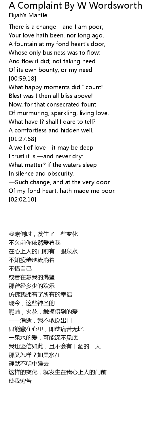 | [01:58.10] | Of my fond heart, hath made me poor. |