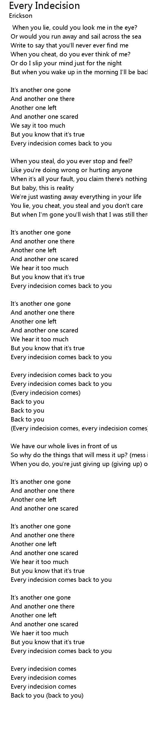 (Every indecision comes, every indecision comes) |