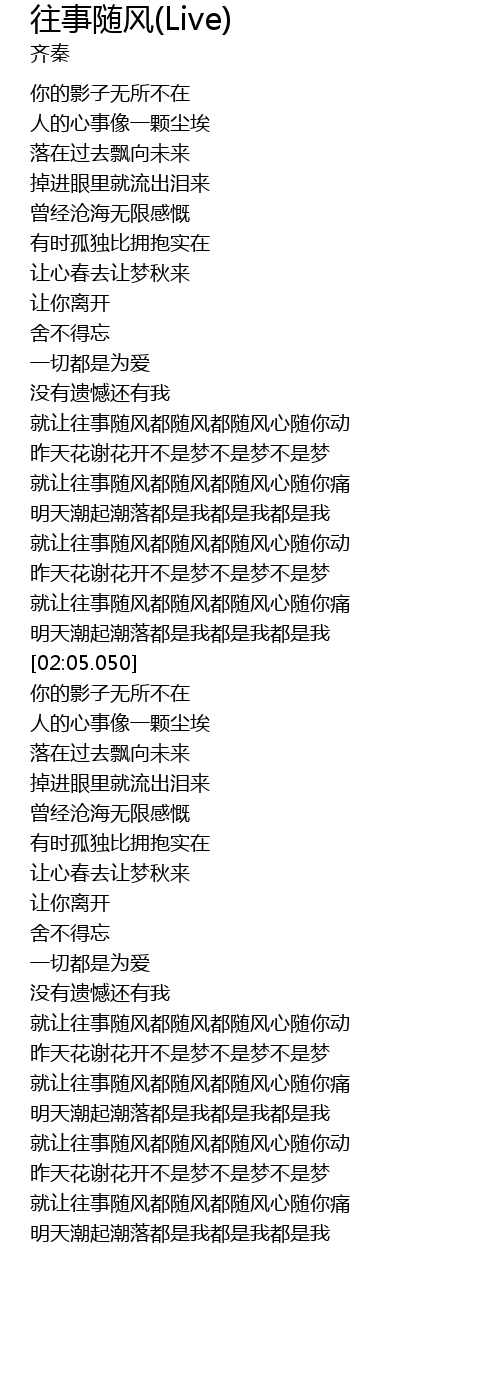 | [03:30.760] | 就让往事随风都随风都随风心随你痛 |