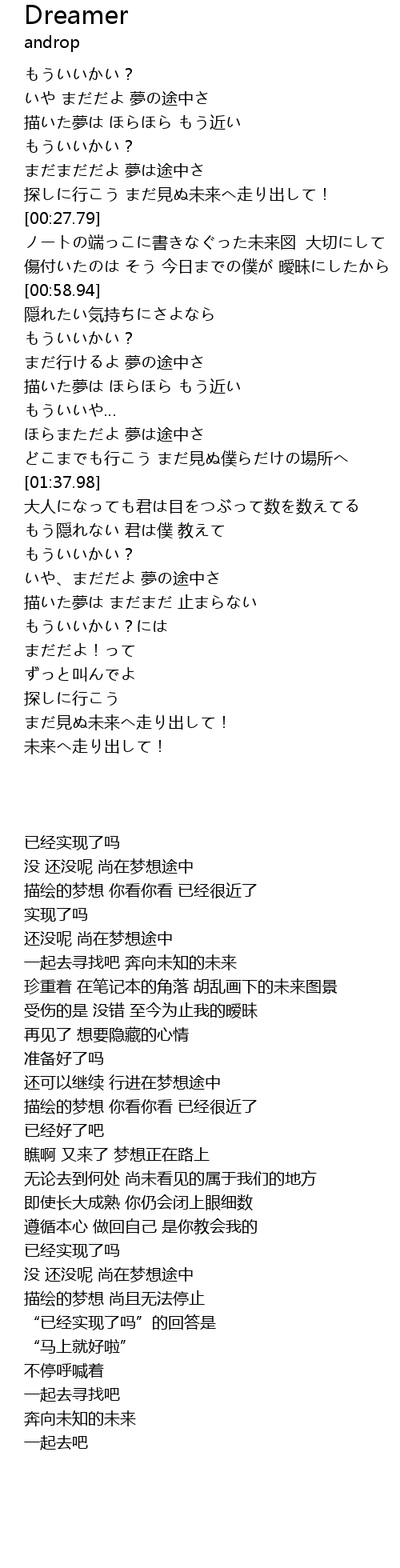 | [00:02.83] | いや まだだよ 夢の途中さ |