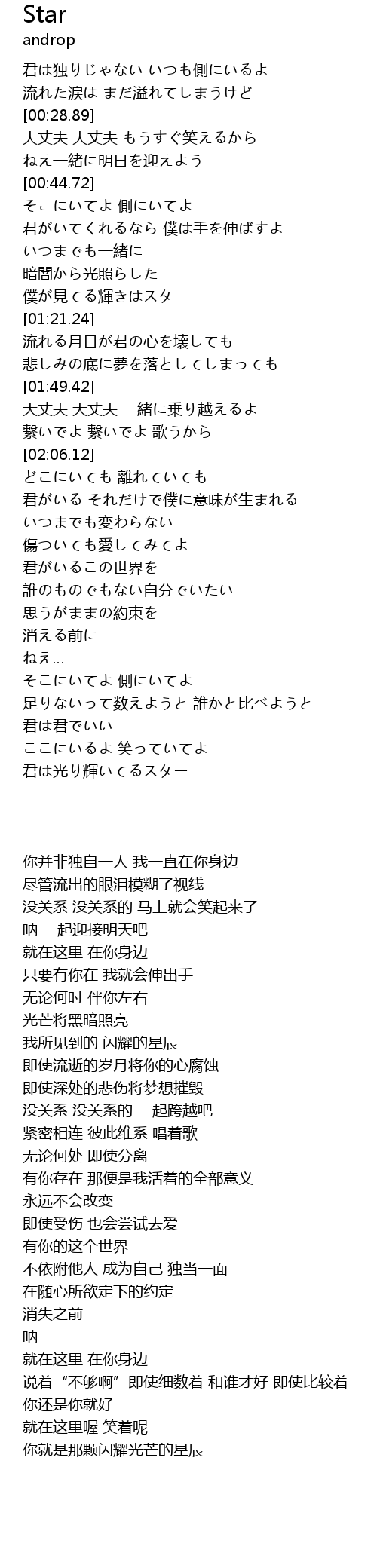 | [03:31.06] | 君は光り輝いてるスター |