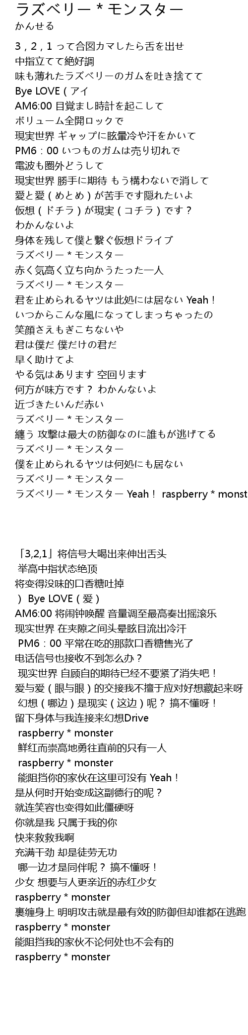 | [02:31.99] | ラズベリー*モンスター Yeah! raspberry*monster Yeah! |